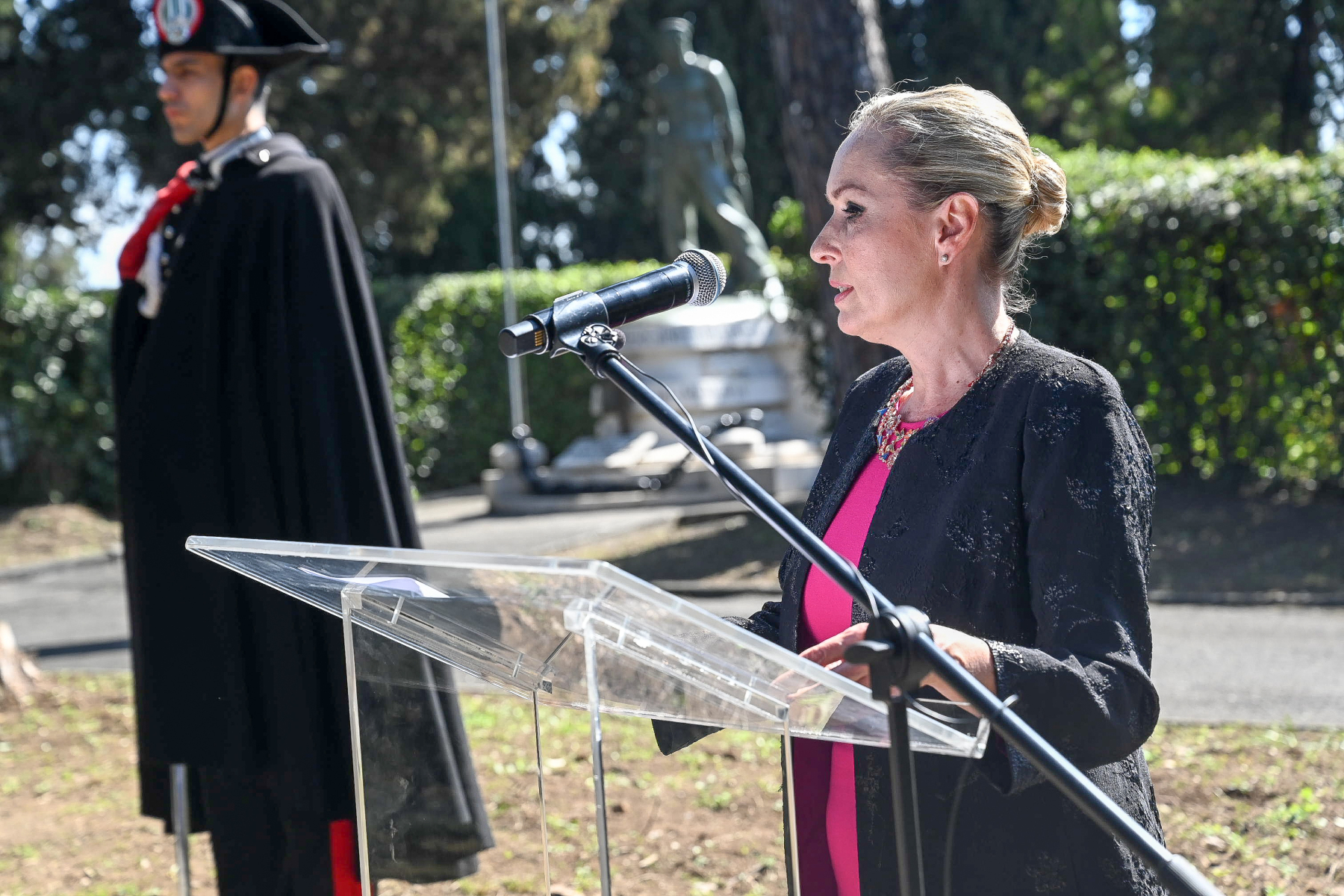 Na slávnostnej ceremónii sa zúčastnil veľký počet účastníkov z Talianska a zo Slovenska. Boli medzi nimi vysokí predstavitelia oboch krajín, rovnako ako predstavitelia politického, spoločenského života a predstavitelia armády. Veľkým svedectvom o pokračujúcej úcte Sloveniek a Slovákov k Štefánikovi bola tiež prítomnosť našej delegácie – pätnástich členov Klubu generálov SR a Spoločnosti M.R. Štefánika. Program ceremónie vo všetkých svojich príhovoroch na cintoríne Verano, rovnako ako na slávnostnej recepcii na Veľvyslanectve SR vo večerných hodinách,  zdôrazňoval odkaz Štefánika veľkého syna našej vlasti. Bustu slávnostne odhalila ministerka kultúry SR Martina Šimkovičová spolu s podpredsedom vlády SR Tomášom Tarabom. V ekumenickej pobožnosti z poverenia Zboru biskupov predniesol slávnostný príhovor emeritný biskup Július Filo a z poverenia KBS rektor Pápežského slovenského ústavu sv. Cyrila a Metoda v Ríme rev. Dr. Pavol Zvara, PhD., SLL, ktorý sa modlil spolu s prítomnými modlitbu za mier pápeža Leva XIV. Za tým nasledovali viaceré pozdravy a hodnotenia, ktoré pokračovali vo večernom programe na veľvyslanectve.